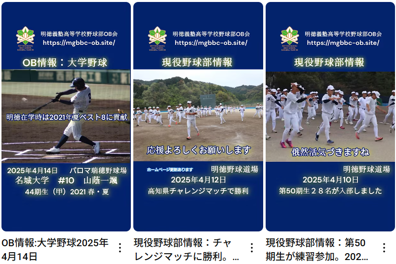 写真は6月2日の明治安田との3軍戦後に明徳OB3人で撮った1枚です。