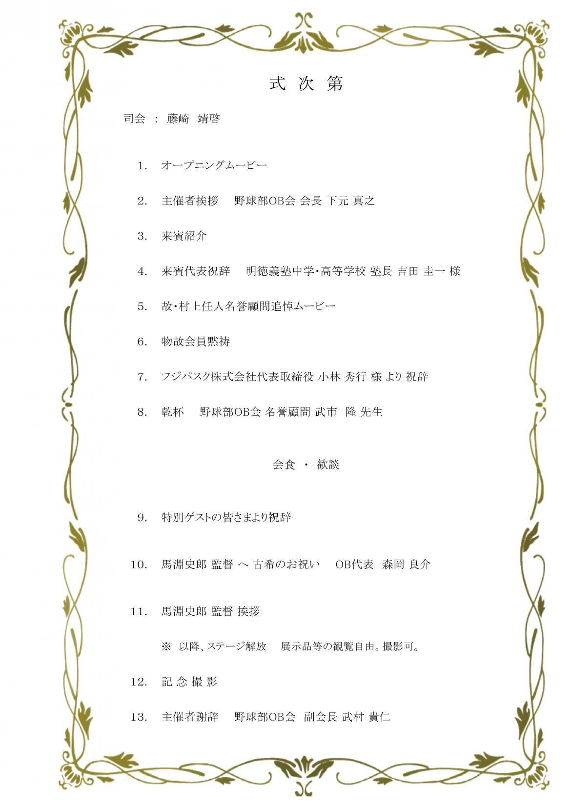創部50周年記念式典 式次第